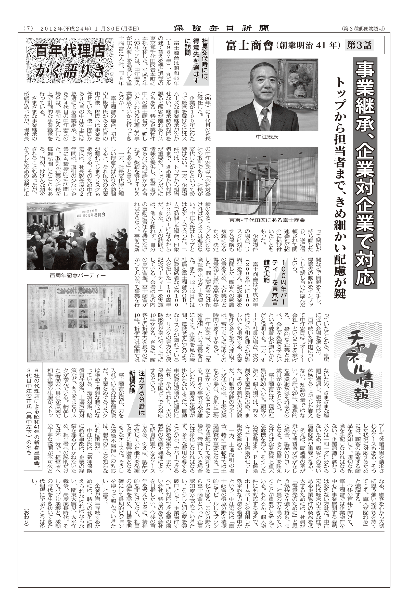 株式会社 富士商会 〒101-0032 東京都千代田区岩本町2-2-7 03-3865-3741(代表) 事業内容 保険商品の販売・仲介、保険契約の締結・管理、保険金請求手続きのサポート、保険に関するコンサルティング