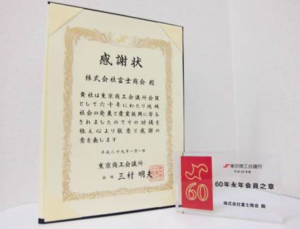 *1956年(昭和31年)10月に東京商工会議所に入会し、永年に