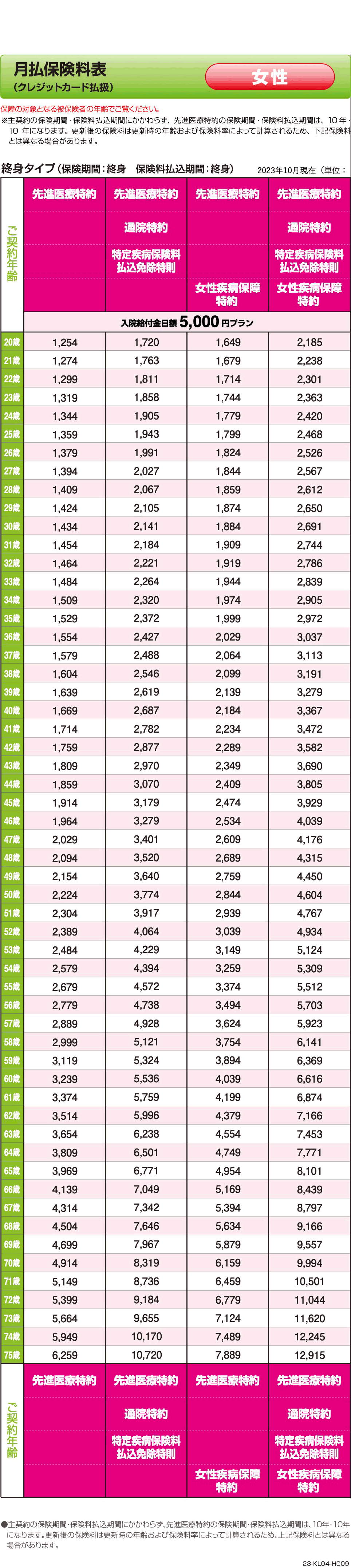 メディカル Kit NEO 保険料表